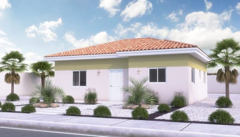 AWG. 209,600.00The Almendra is an 80 square meters home with two bedrooms and one bathroom. This home comes with a spacious living room and attached kitchen space with an open and airy feel. The Almendra is comfortable and modern and costs AWG 209,600.00